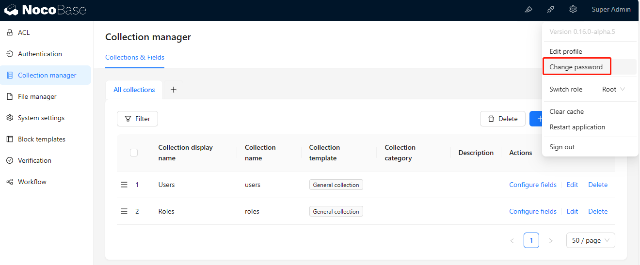2. Log in to the Nocobase backend, change your password, and start using the application.
